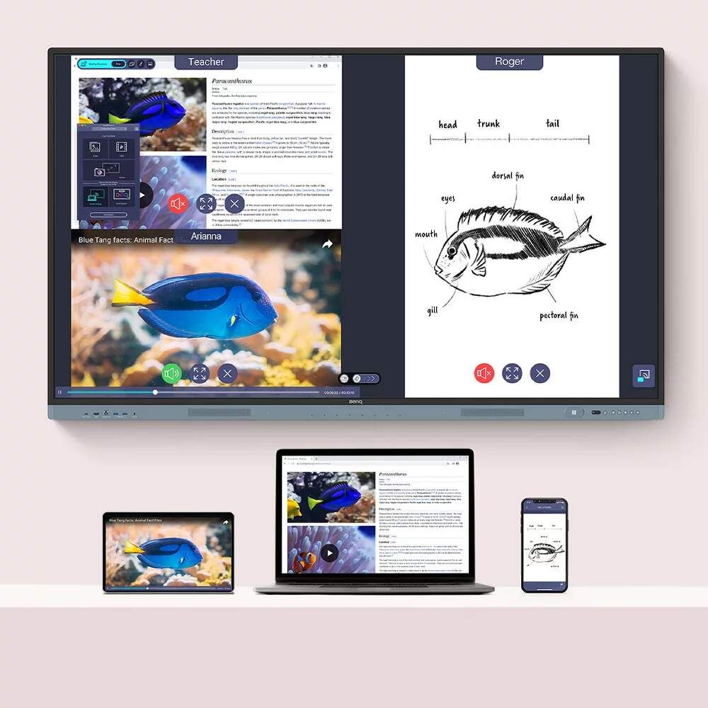 De RM04 werkt met EZWrite 6, BenQ’s uitgebreide whiteboardsoftware. Hiermee kun je lesstof presenteren, aantekeningen maken, samenwerken en het scherm flexibel indelen. Je kunt eenvoudig bestanden openen, erop schrijven en je lesnotities opslaan of delen.